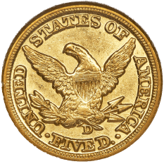Dahlonega Mint struck five dollar gold half eagle
